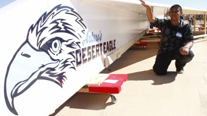 Después de varios intentos fallidos, el avión fue remolcado hacia el cielo sobre el desierto de Sonora en la tarde del miércoles por un helicóptero Sikorsky S58T. El equipo que diseñó el avión esperaba lanzarlo de unos 4000 a 5000 pies de altura, pero debido a las condiciones del viento tuvieron que lanzarlo desde 2,703pies.